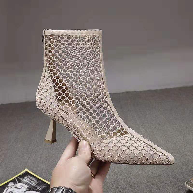 Europea Style 2021 Women Mesh Boots,Sexy Hollow out Sandals Shoes,Fashion Summer Heels,Pointed toe,BLACK,BEIGE,FREE Dropshipping