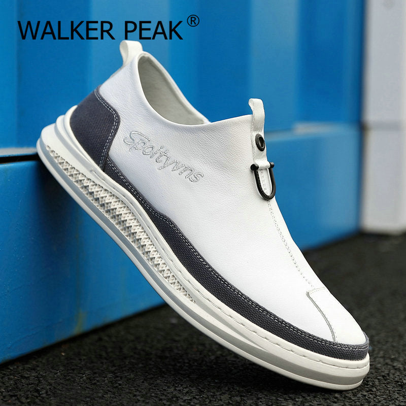 2021 New Mens Leather Casual Shoes White Tenis Footwear for Men Fashion Comfortable Autumn Male Flats Slip on Man Loafers Shoe