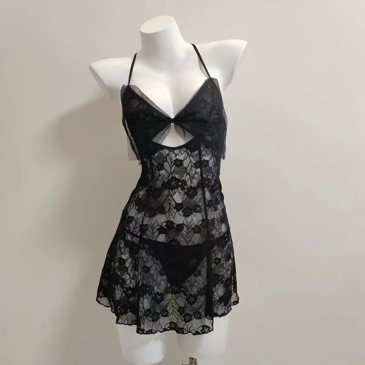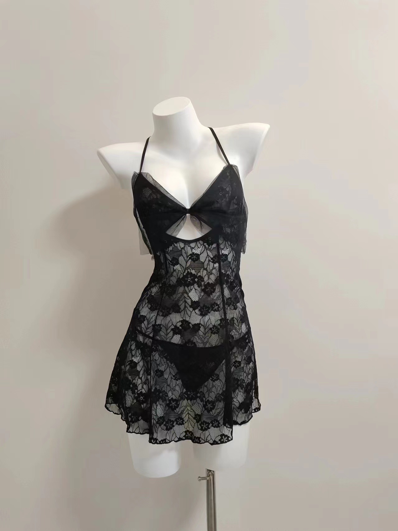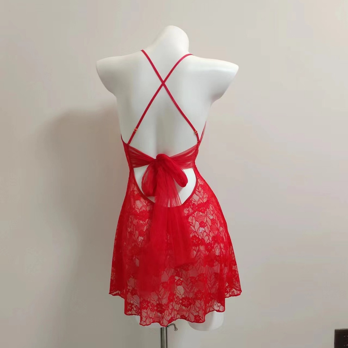 Nigikala Nigikala Pajamas Woman 2025 New Seduction Red Lace Hollow Big Bow Bow Small Breast Slings Sleeping Skirt