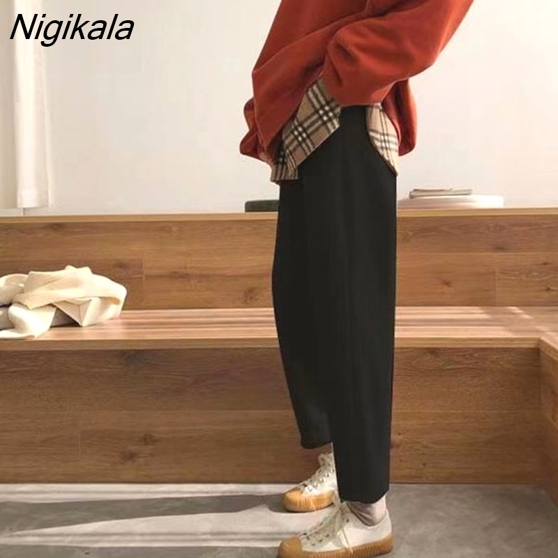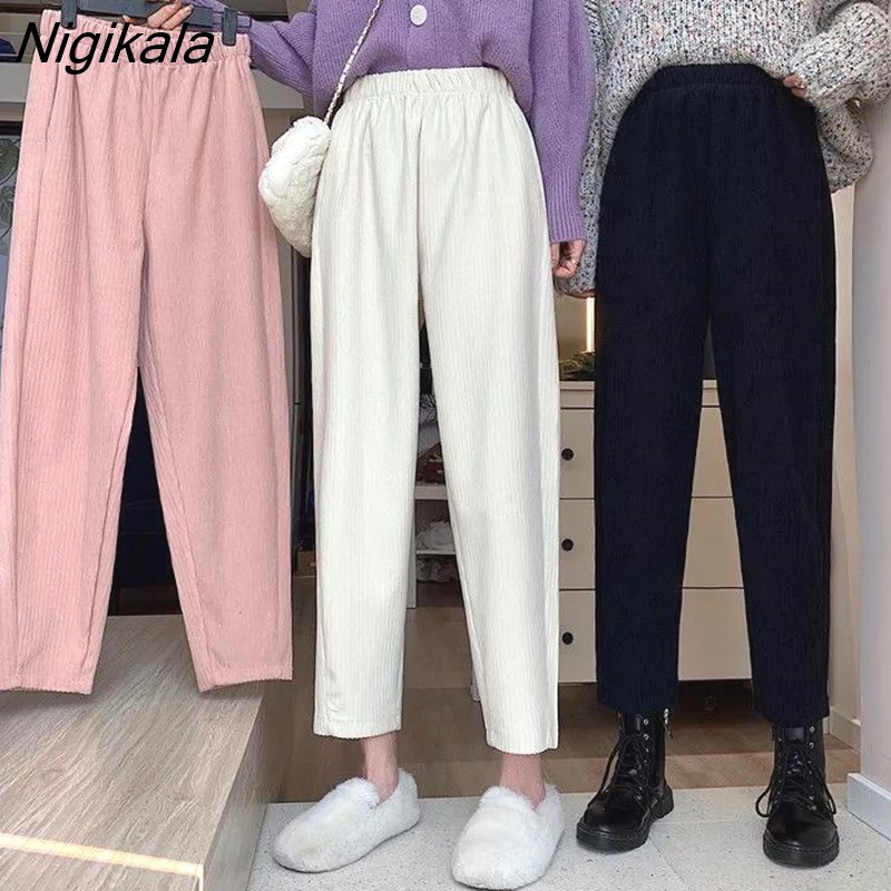 Nigikala Pants Women Winter Aesthetic Thicken Corduroy High Waist Elastic Solid Loose Wide-leg Simple Trendy Chic New Trousers