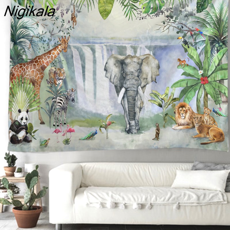 Nigikala Fairy Tale Animal Forest Wall Tapestry Art Decor Blanket Curtain Hanging Home Bedroom Living Room Decoration