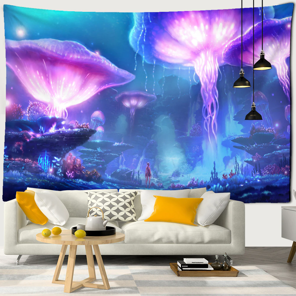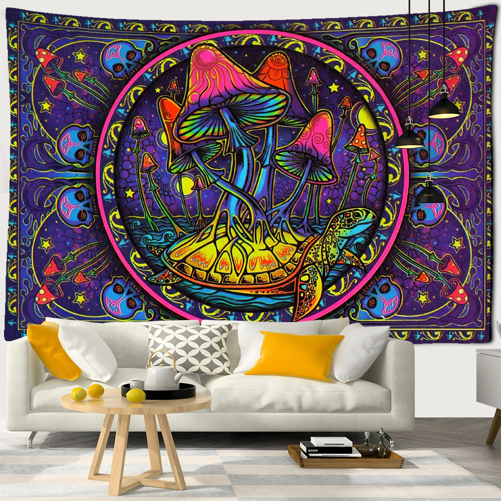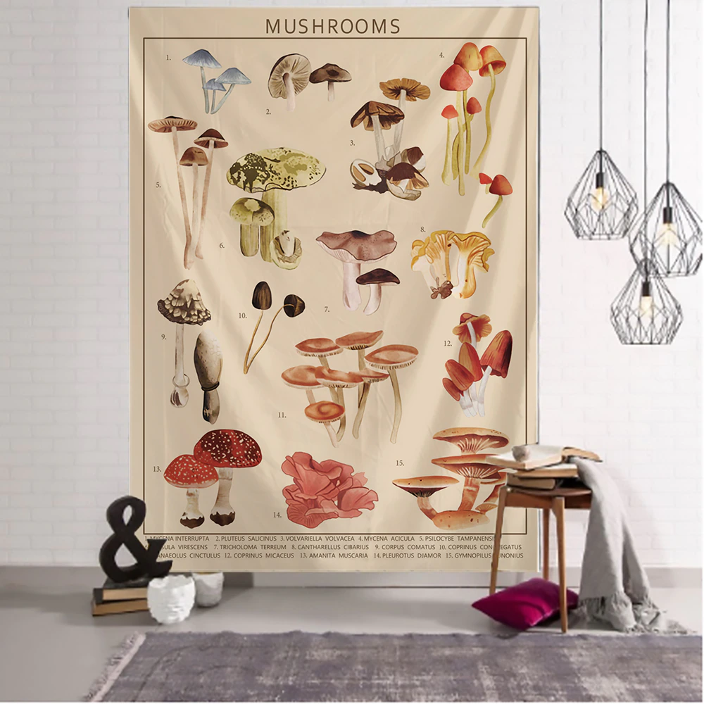 Nigikala Mushroom Tapestry Mycology Mushroom Wall Hanging Identification Chart Diagram Illustration Wall Art Boho Room Decor