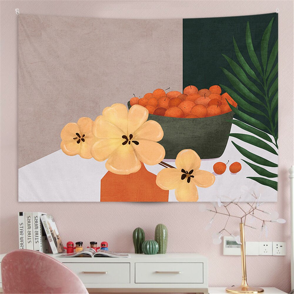 Nigikala Warm Color Plant Playing Yarn Ball Cat Print Tapestry Wall Aesthetic Tapestry Wall Tapestry Christmas Tree Wall Decor