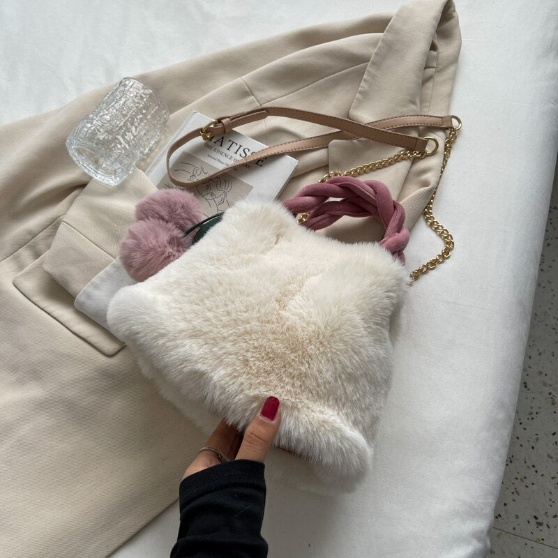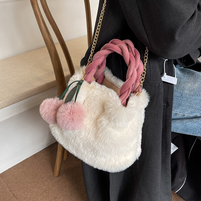 էѧӧܧ 2021 Luxury Designer Bucket bag Women Handbags Faux Fur Plush Shoulder Bags Crossbody Bag Clutch Purse Sweet Cute