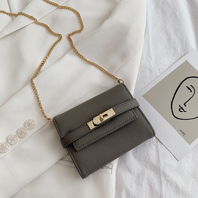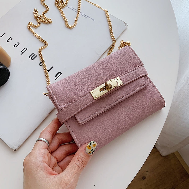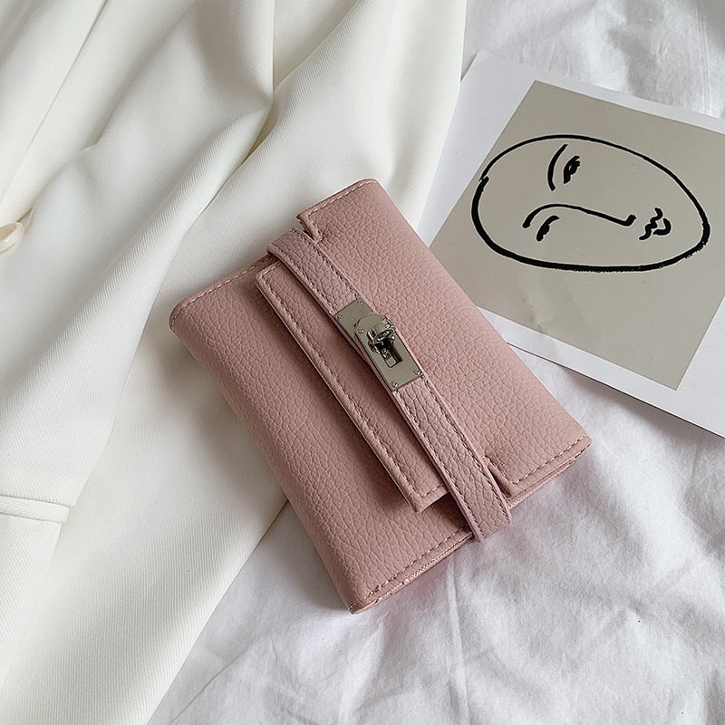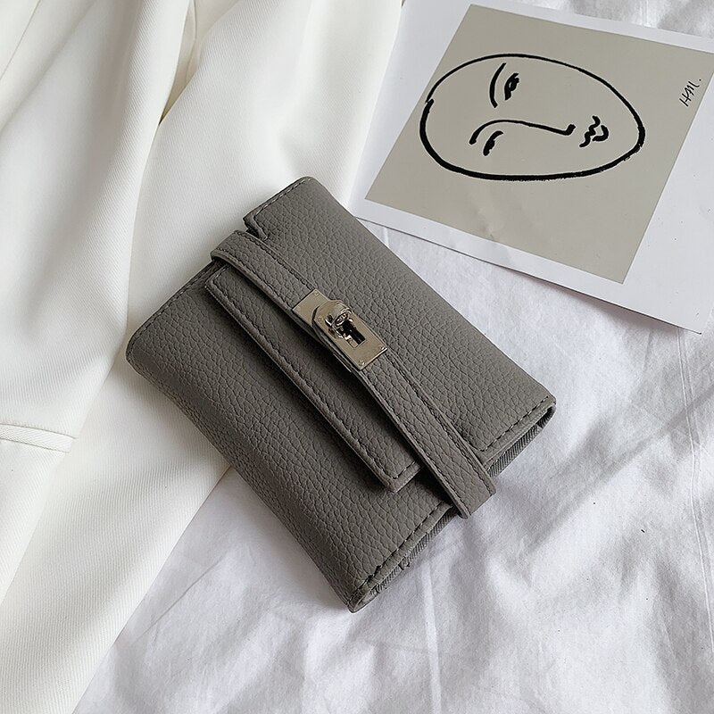 էѧӧܧ 2021 New Lady Wallets Name Metal Lock PU Leather Short Card Holder Chain Girl Purse High Quality Brand Women wallet