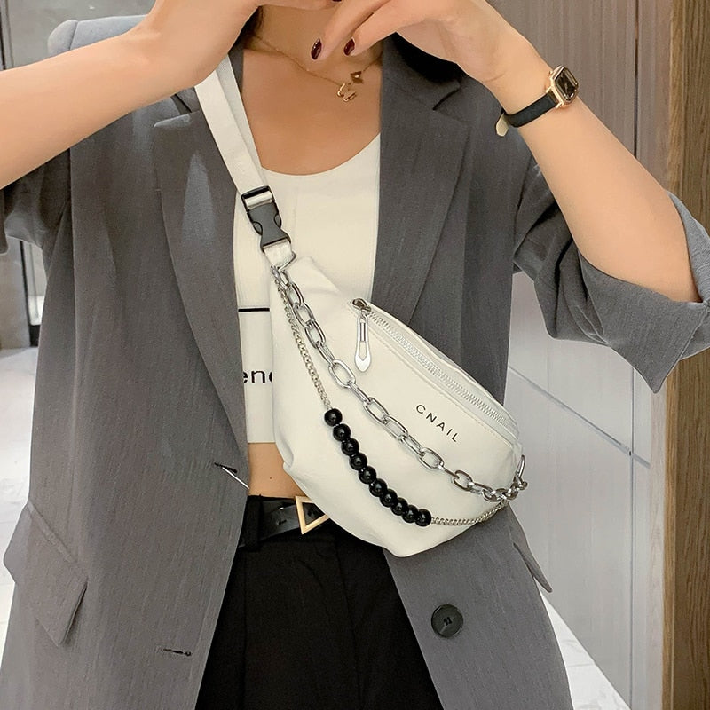 էѧӧܧ Silver Chain Design PU Leather Crossbody Bags For Women 2021 Shoulder Messenger Handbags Small Chest Bag Travel