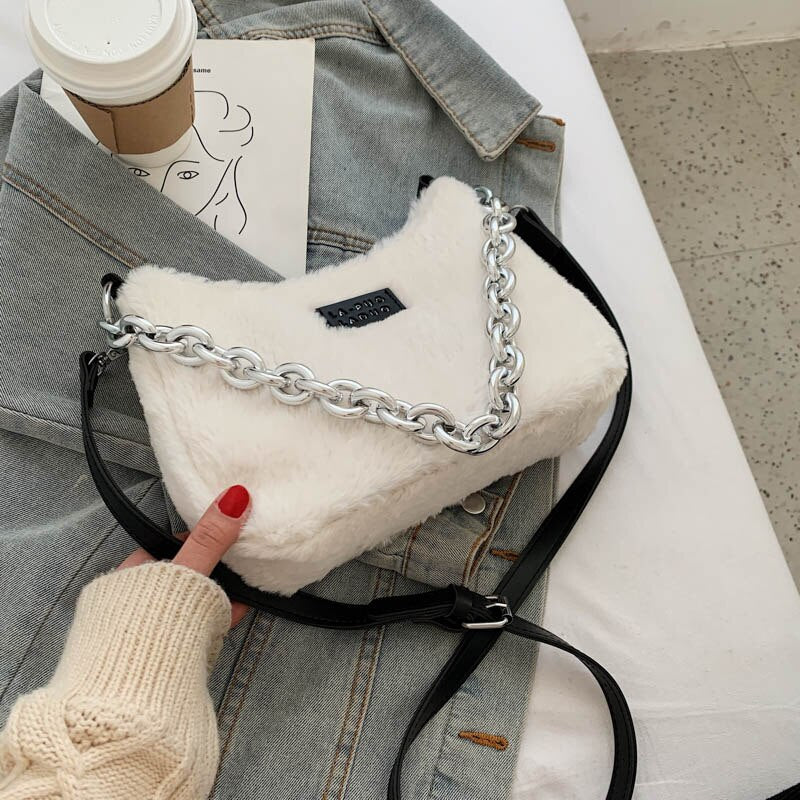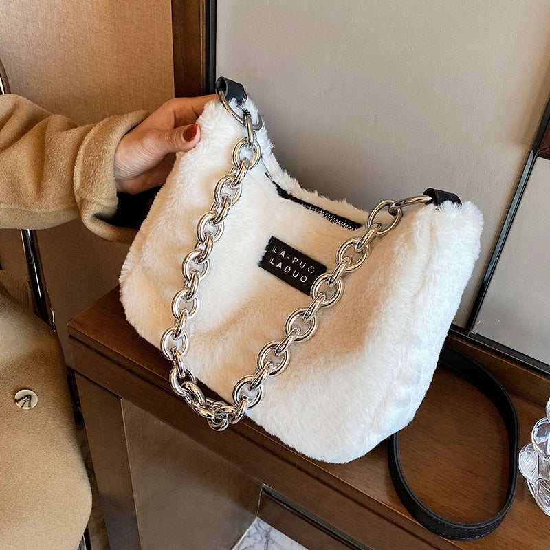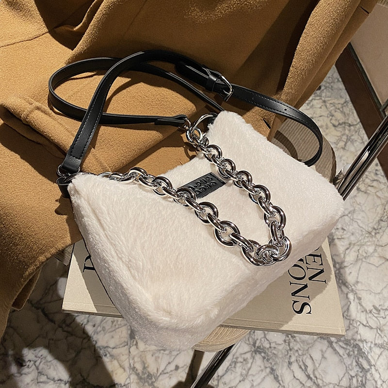 էѧӧܧ Small Leopard Soft Faux Fur Totes Bags With for Women 2021 Winter Simple Solid Color Fashion Luxury Handbags Purses