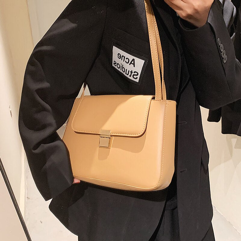 էѧӧܧ Small Simple Style PU Leather Underarm Bags for Women 2021 Winter Designer Lady Travel Shoulder Purses and Handbags