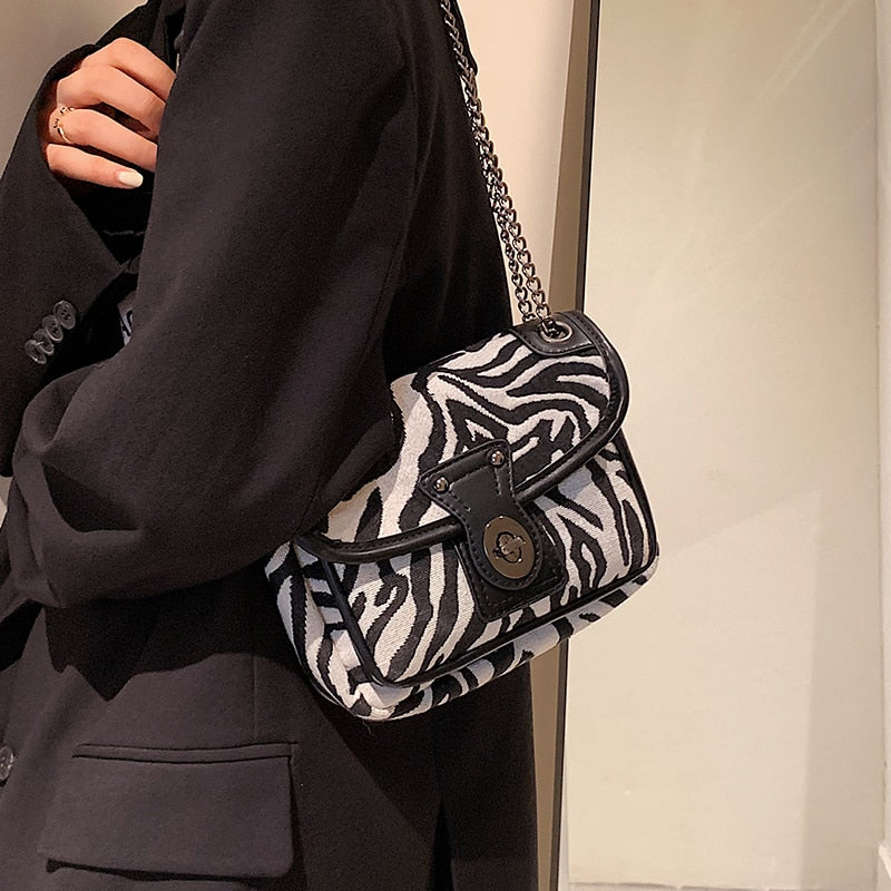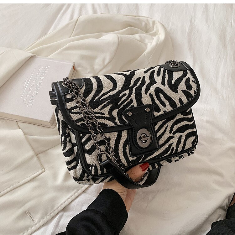 էѧӧܧ Zebra Pattern Small PU Leather Crossbody Bags for Women 2021 Winter Chain Shoulder Handbags Female Travel Purses
