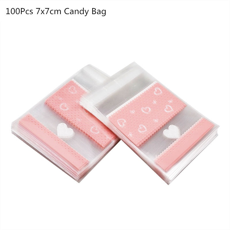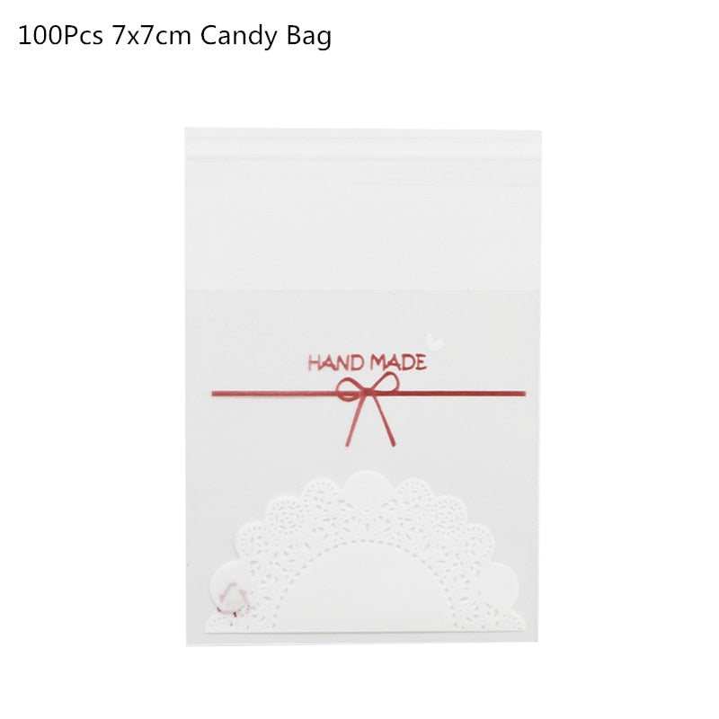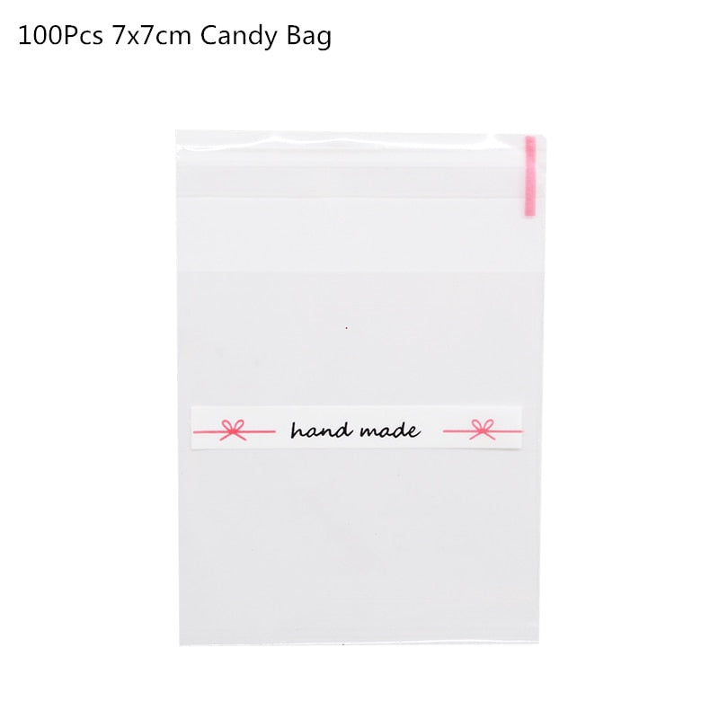 100Pcs Plastic Bags Thank you Cookie&Candy Bag Self-Adhesive For Wedding Birthday Party Gift Bag Biscuit Baking Packaging Bag