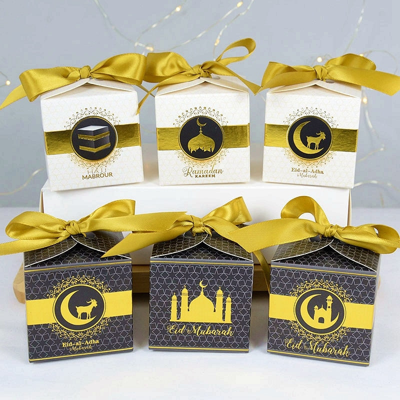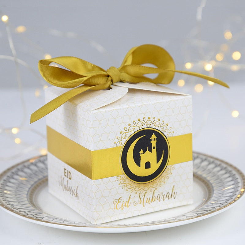 10pcs Eid Mubarak Candy Boxes Ramadan Kareem Decoration Paper Gift Box Islamic Muslim Party Supplies Eid al-Fitr Hajj Mabrour