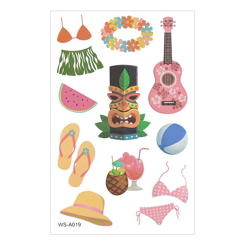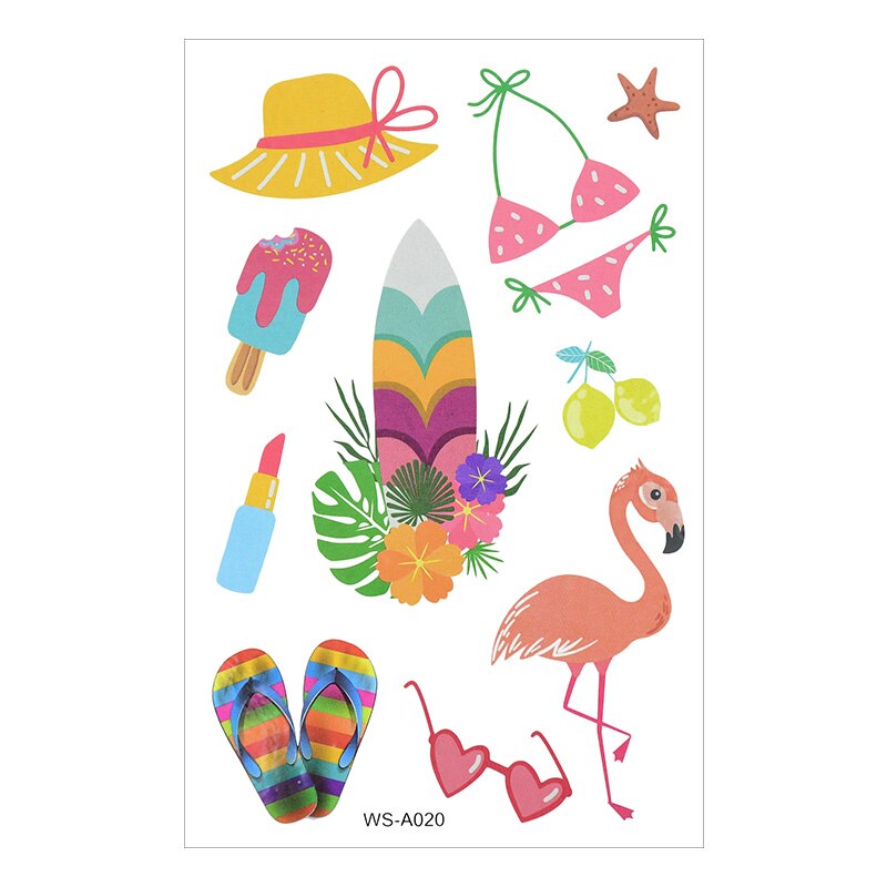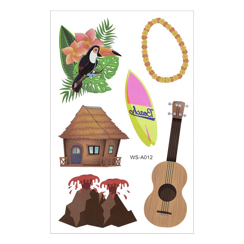 10Sheets Hawaiian Party Aloha Temporary Tattoo Sticker Waterproof Tropical Flamingo Party Luau Summer Beach Birthday Decorations