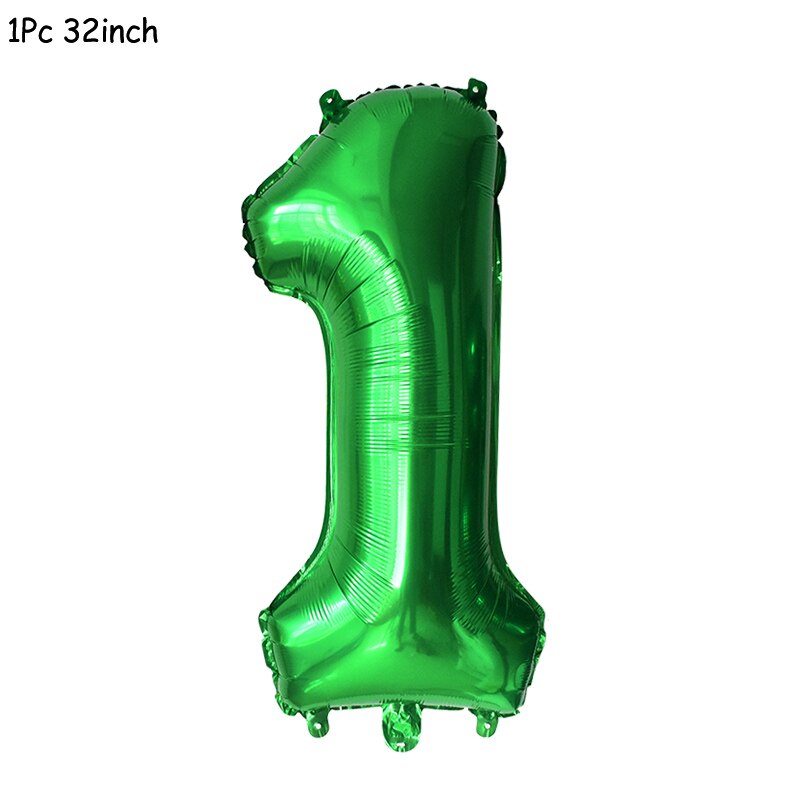 11Pcs Green Foil Number Balloons Dinosaur Latex Balloon Kids Jungle Theme Birthday Safari Forest Party Decorations Baby Shower