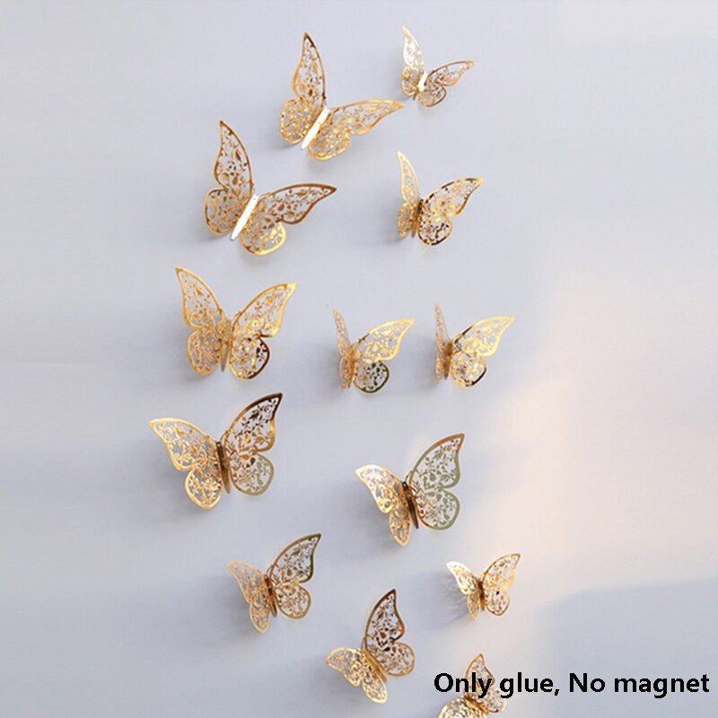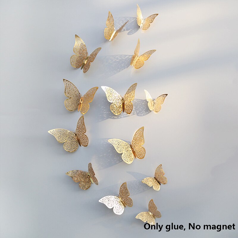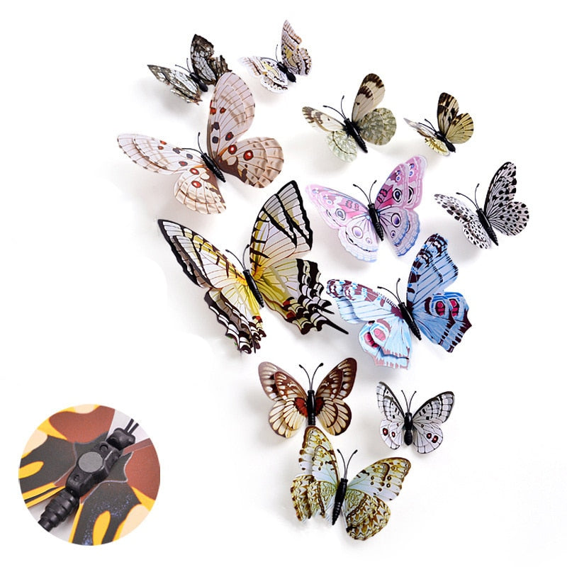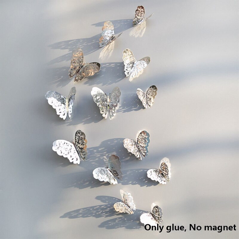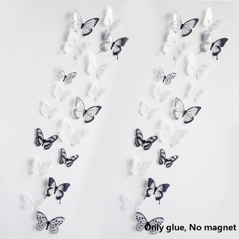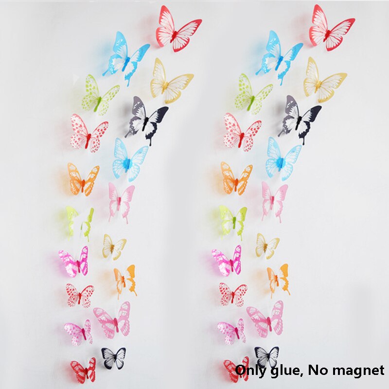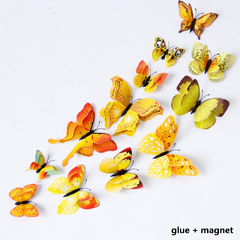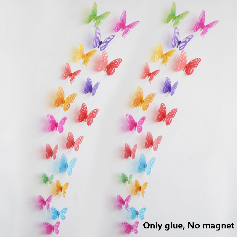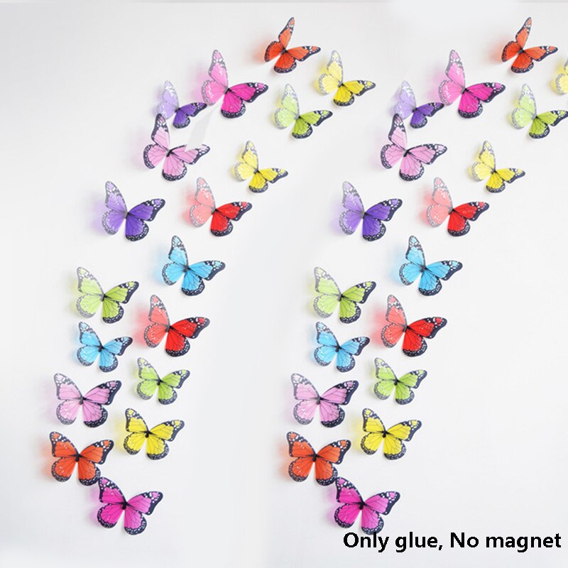 12Pcs 3D Double Layer Butterfly Wall Sticker on The Wall for Home Decor DIY Butterflies Fridge Magnet Stickers Room Decoration