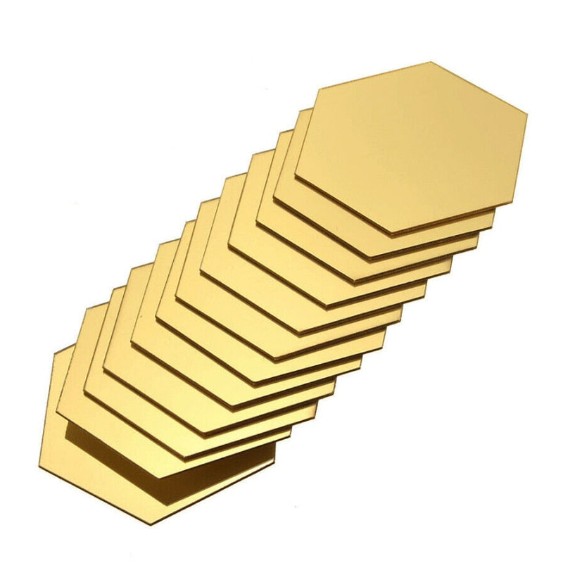 12pcs Hexagon Ball Room Bathroom Decor Acrylic Wall Mirror Irregular Mirror Living Room Decoration Mini Sticker Mirror