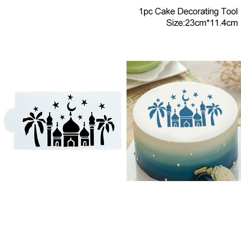 1Pc Ramadan Kareem Spray Stencils Birthday Cake Mold Decorating Tools Eid Mubarak Muslim Islamic Festival Party DIY Decorations