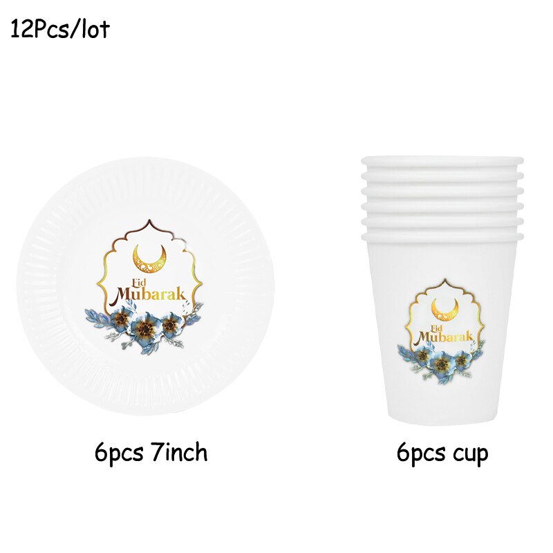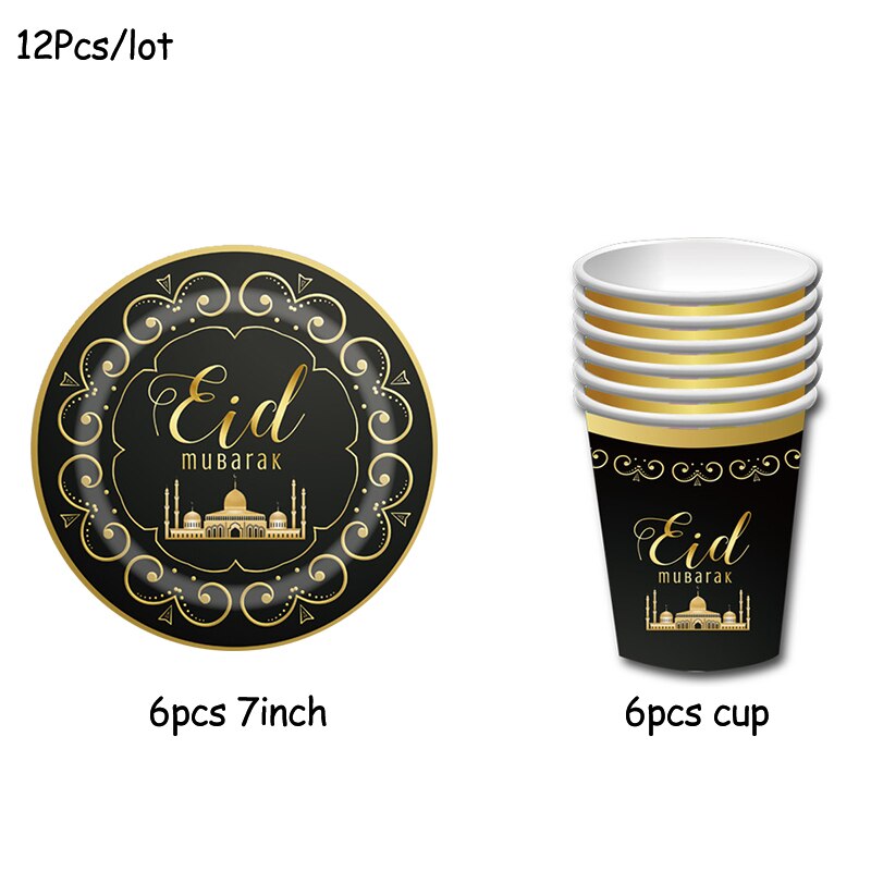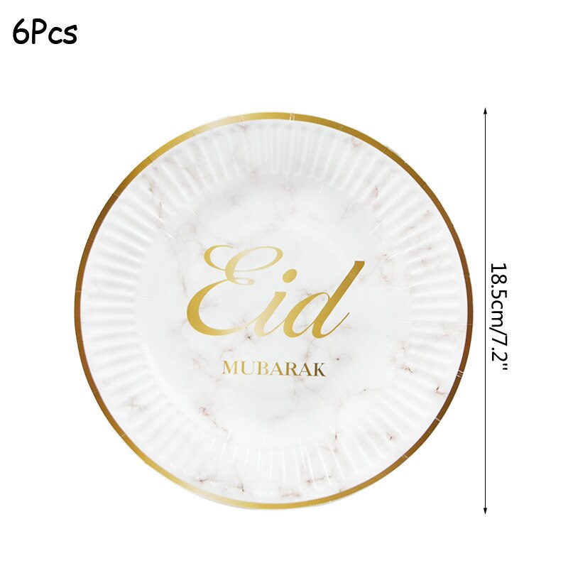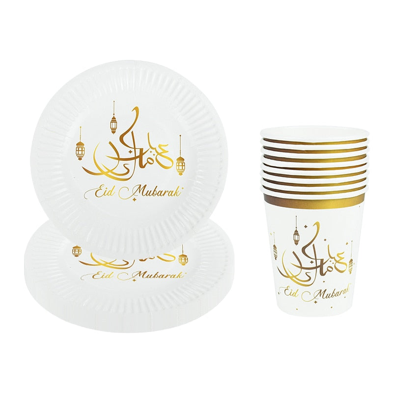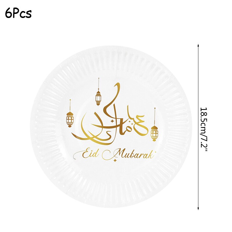 1set Eid Mubarak Disposable Tableware Paper Plates Cups for Ramadan Kareem Decoration Islamic Muslim Festival Party Supplies