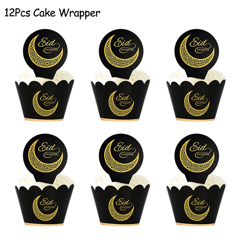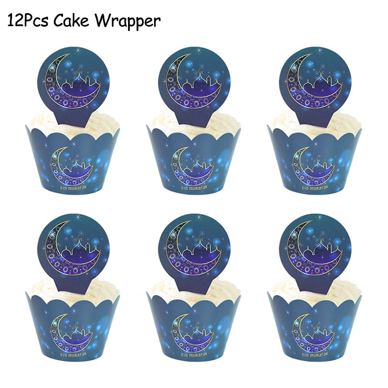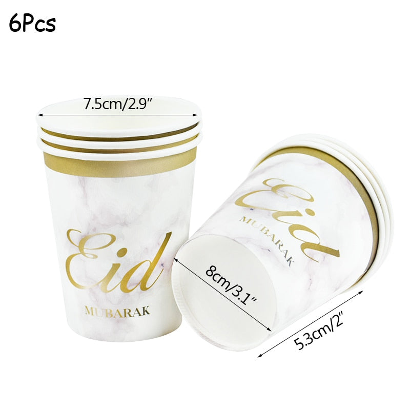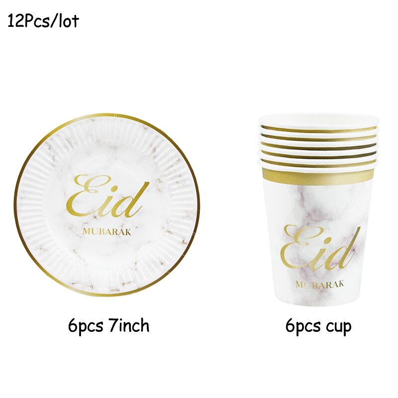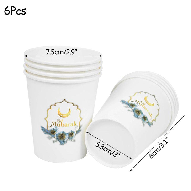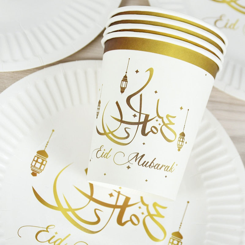 1set Eid Mubarak Disposable Tableware Paper Plates Cups for Ramadan Kareem Decoration Islamic Muslim Festival Party Supplies