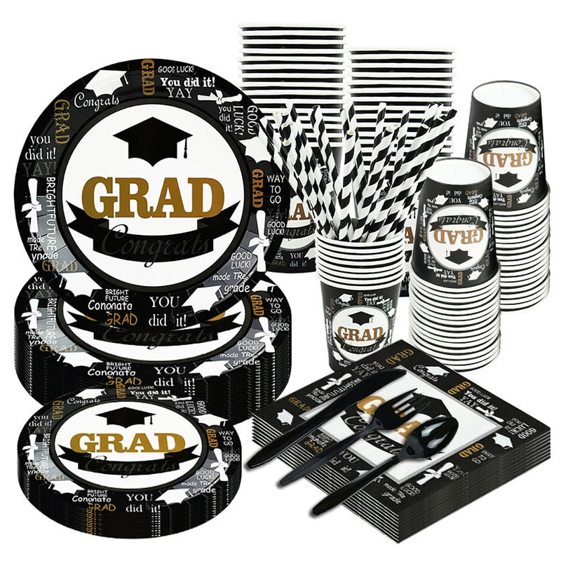 1Set Graduation Balloons Disposable Tableware 2022 Graduation Party Decorations Congrats Grad Paper Garland Banner Class of 2022