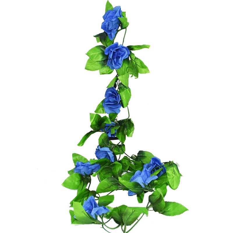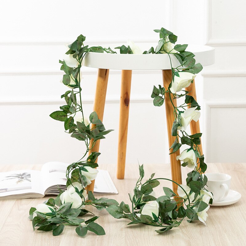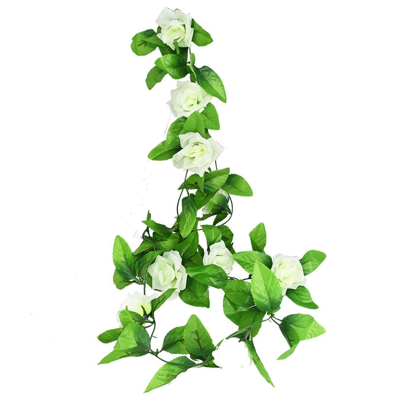 2.4m Silk Artificial Roses Flowers Rattan String Vine with Green Leaves For Home Wedding Garden Decoration Hanging Garland Wall