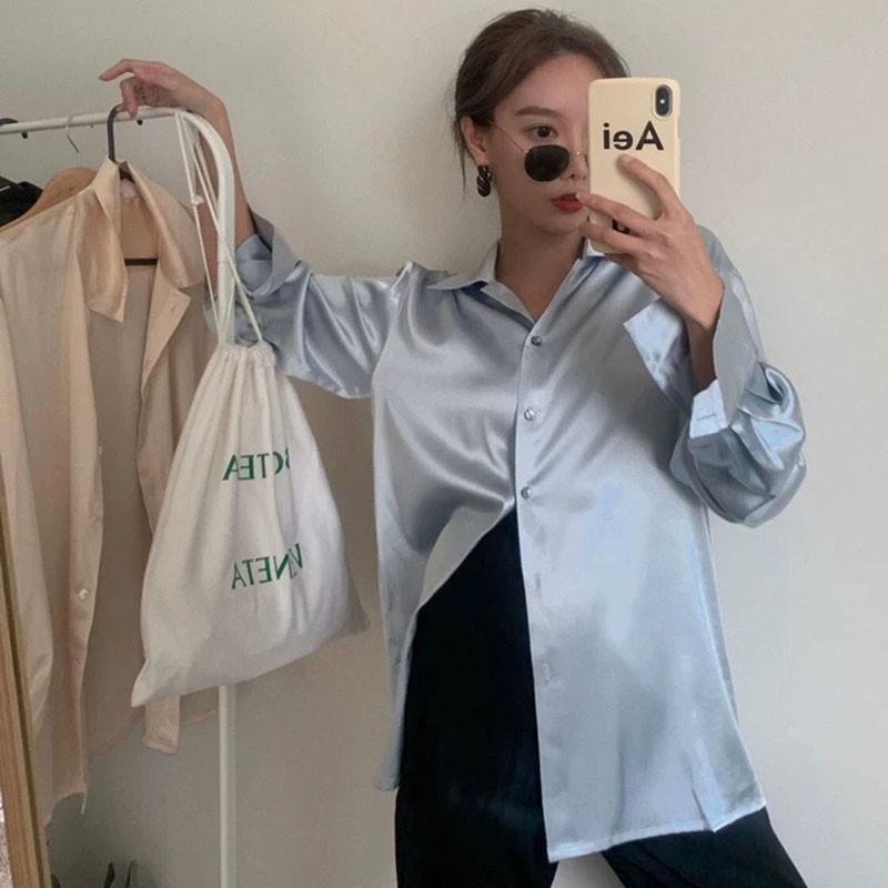 2021 New Spring Summer Casual Blouse Women Fashion Long Sleeve Tops Vintage Femme V Neck Shirts Elegant Sexy Silk Blouse Lu1879