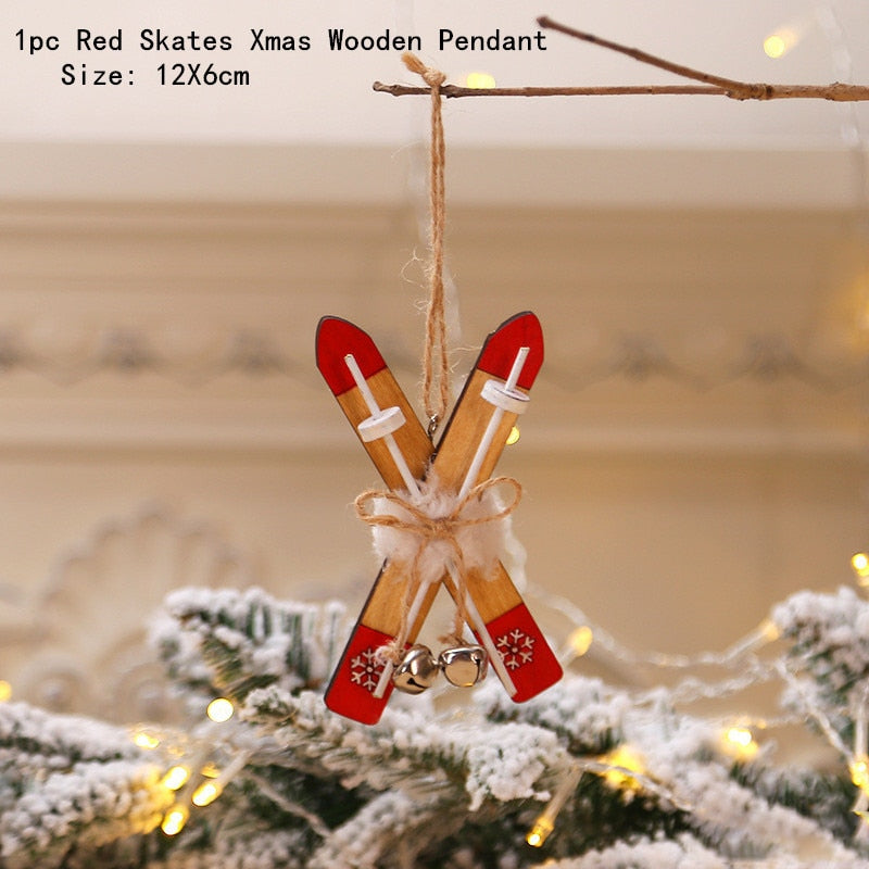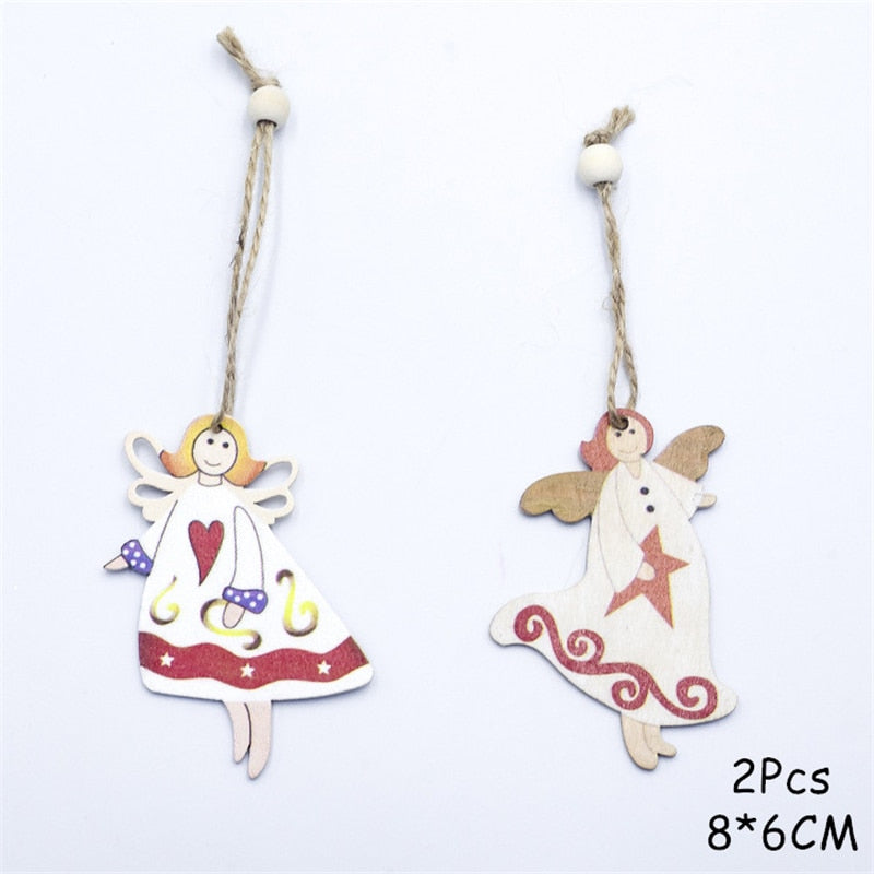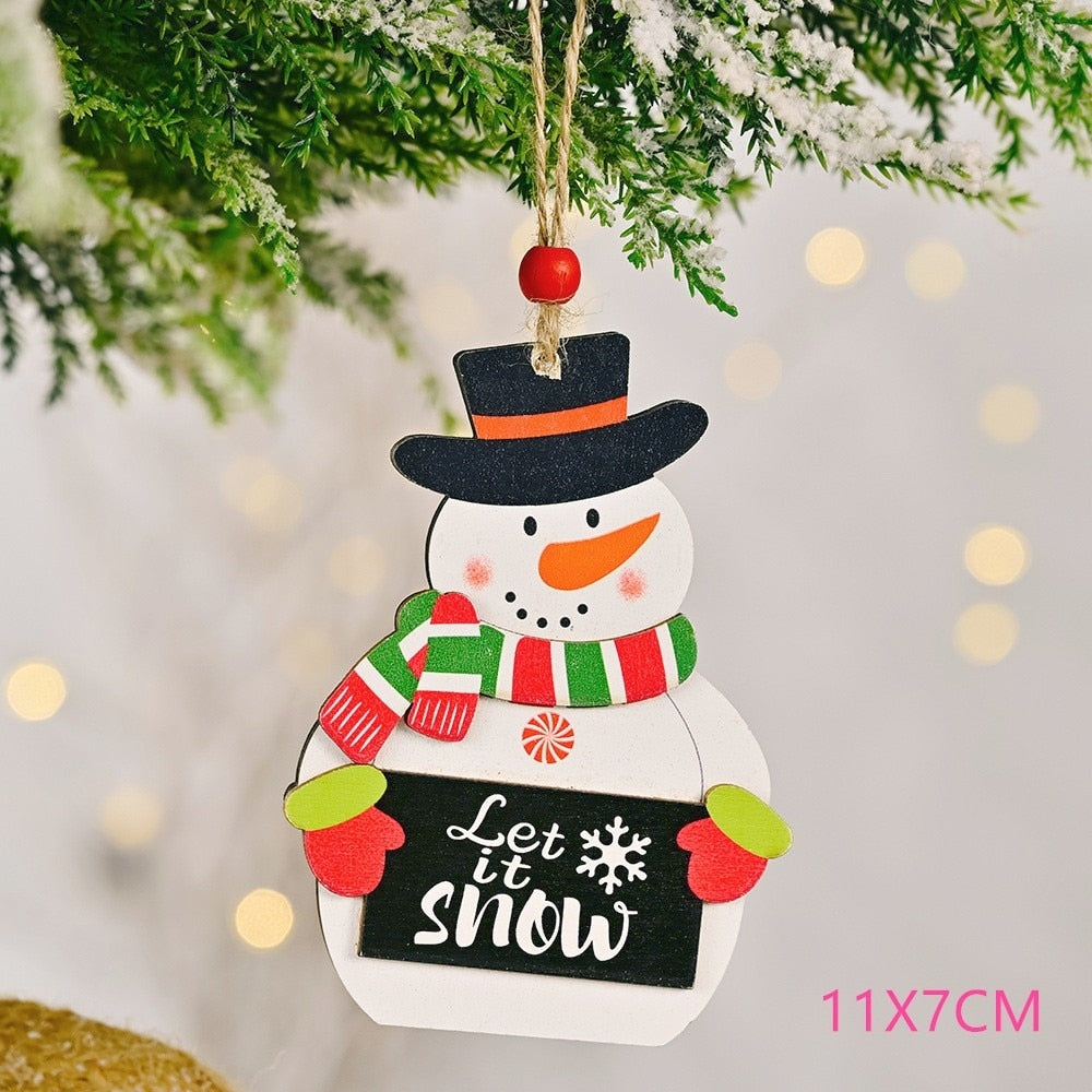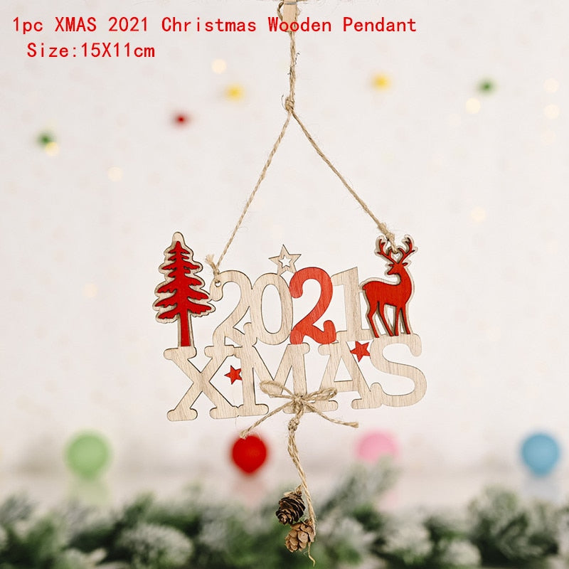2022 New Year Xmas Elk Wood Craft Christmas Tree Ornament Noel Christmas Decoration for Home Wooden Pendant Navidad 2021 Gift