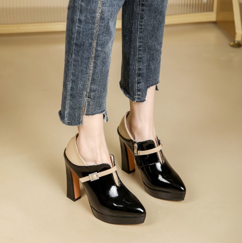 2024 Autumn Wedding Shoes Woman High Heels Women's Pumps Patent Leather Shoe Thick Heel Fashion Pointed toe Deep Wine-red Beige