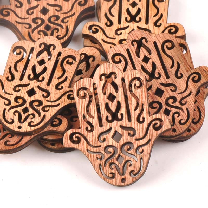 20pcs 43X49mm Natural Vintage Wood DIY Crafts For Hand Of Fatima Handmade Sewing Scrapbooking Handicraft Wooden Ornament M1609