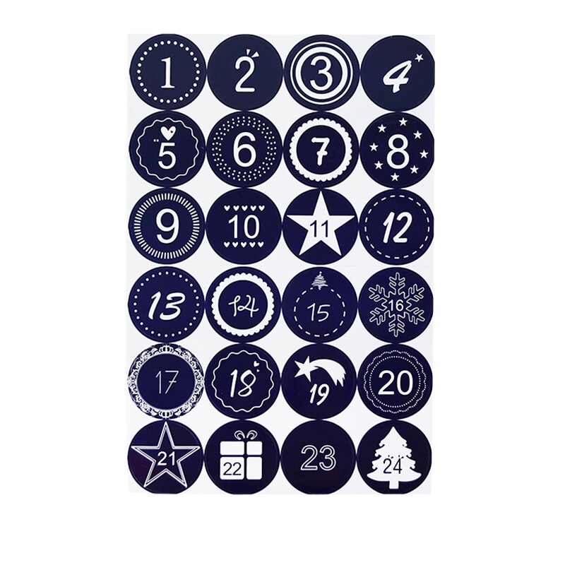 24Pcs 4.5cm Merry Christmas Advent Calendar Number Paper Stickers DIY Scrapbooking Round Christmas Gift Sticker Label Xmas Decor