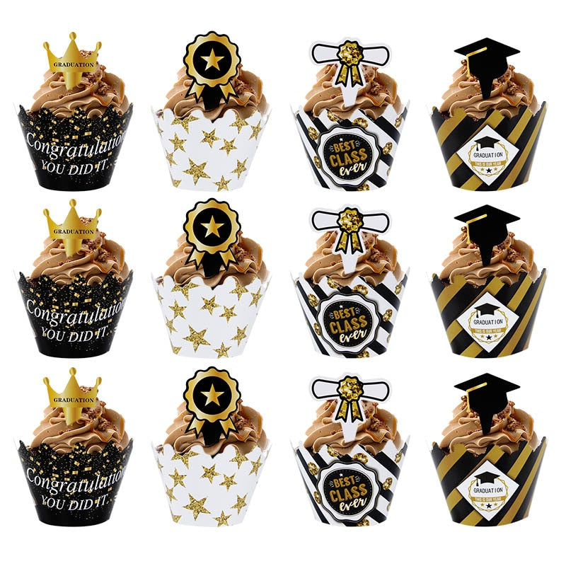 24pcs/set Graduation Party Cupcake Wrappers with Cake Topper Congratulation College Grad Party Decoration Supplies Class of 2022