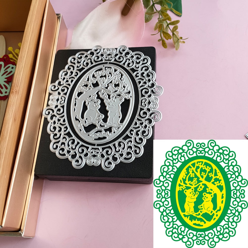 2PCS Ellipse Bear Lace Photo frame background Metal cutting Die DIY scrapbook Photo album Decoration Card