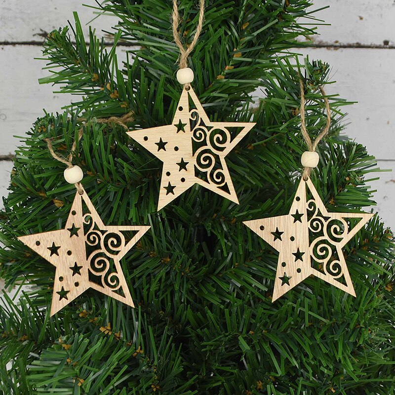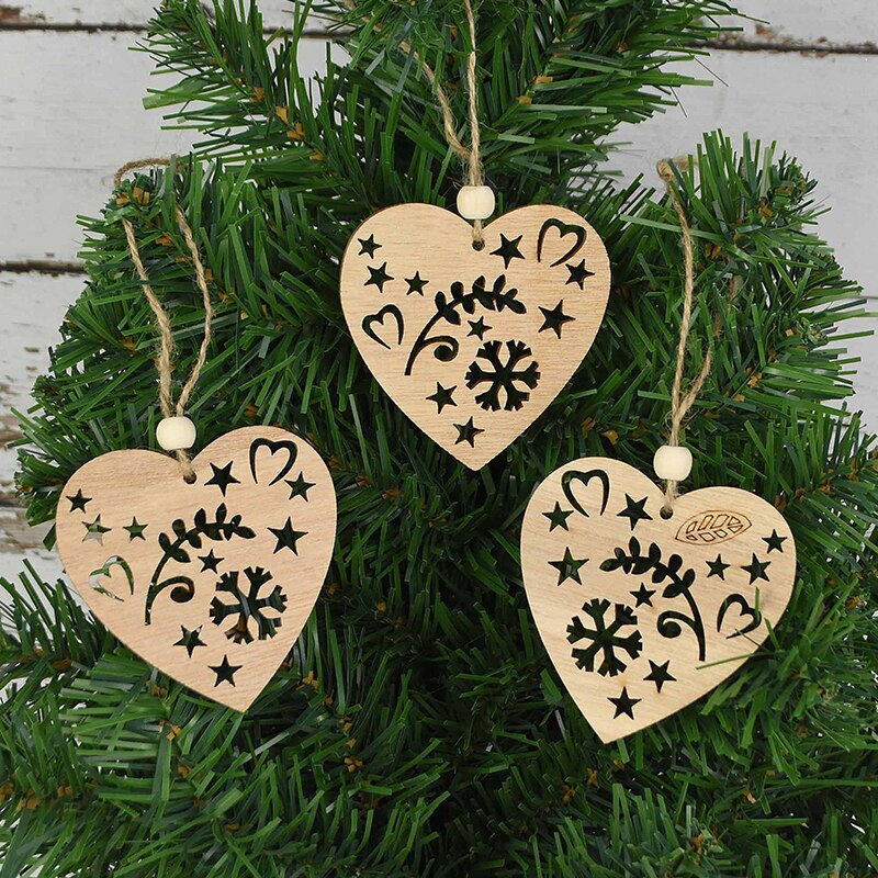 3pcs Vintage Christmas Wooden Pendants Ornaments DIY Wood Craft Christmas Decorations Christmas Tree Hanging Ornaments Gifts