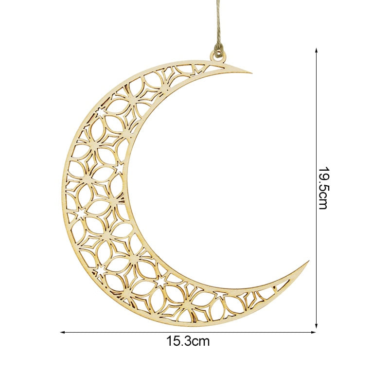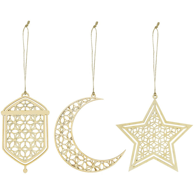 3Pcs Wooden Eid Mubarak Hanging Pendant Ornament Ramadan Kareem Gift Islam Muslim Home Table Decoration DIY Craft Party Supplies