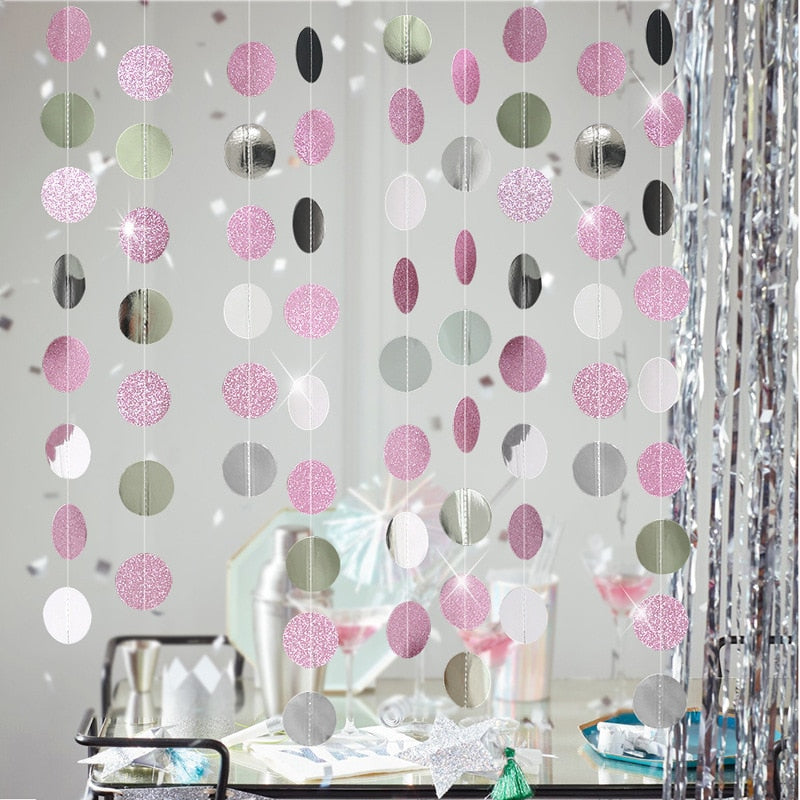4M Paper Star Round Garland Rose Gold Hanging Banner Flag DIY Adult Kids Birthday Party Decoration Supplies Wedding Baby Shower