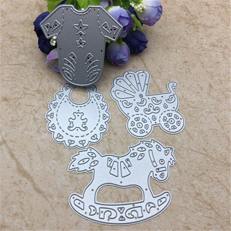 4pcs Baby Suit Carriage Rocking Horse Cutting Dies Stencils DIY Scrapbooking Card Paper Craft Metal Decoration Embossing Folder