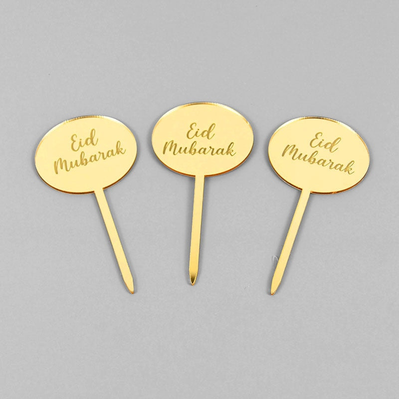 5/10pcs Eid Mubarak Acrylic Cupcake Topper Gold Ramadan Kareem Cake Topper Islamic Muslim Festival Party Cake DIY Decorations