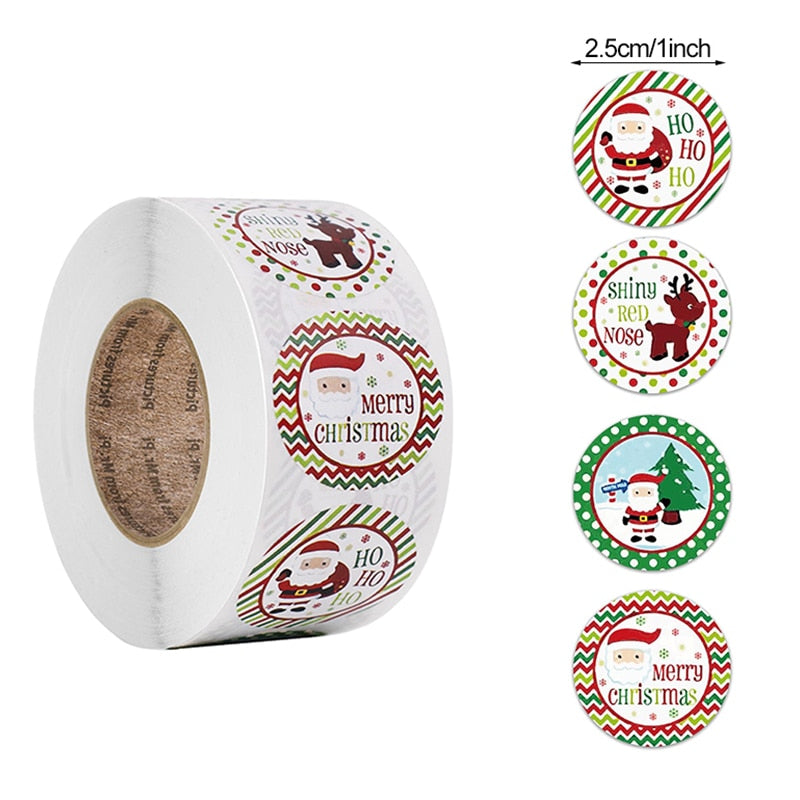 500pcs Merry Christmas Stickers Christmas Tree Elk Candy Bag Sealing Sticker Christmas Gifts Box Labels Decorations New Year