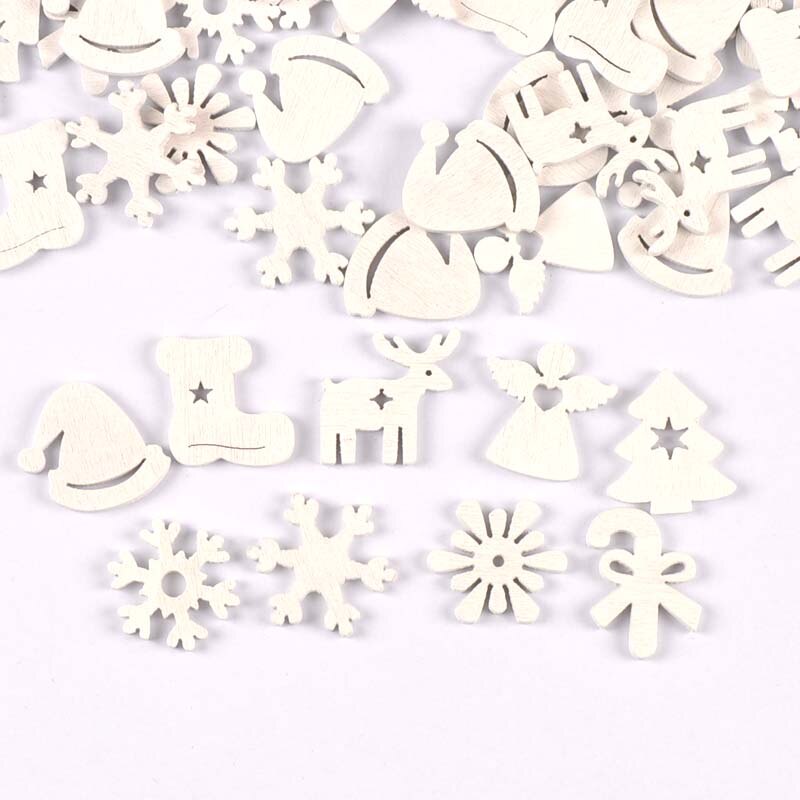 50pcs 22mm White snowflake Wood Slices Decoration DIY Crafts For Scrapbooking Home Decoration Wooden Ornaments m2160