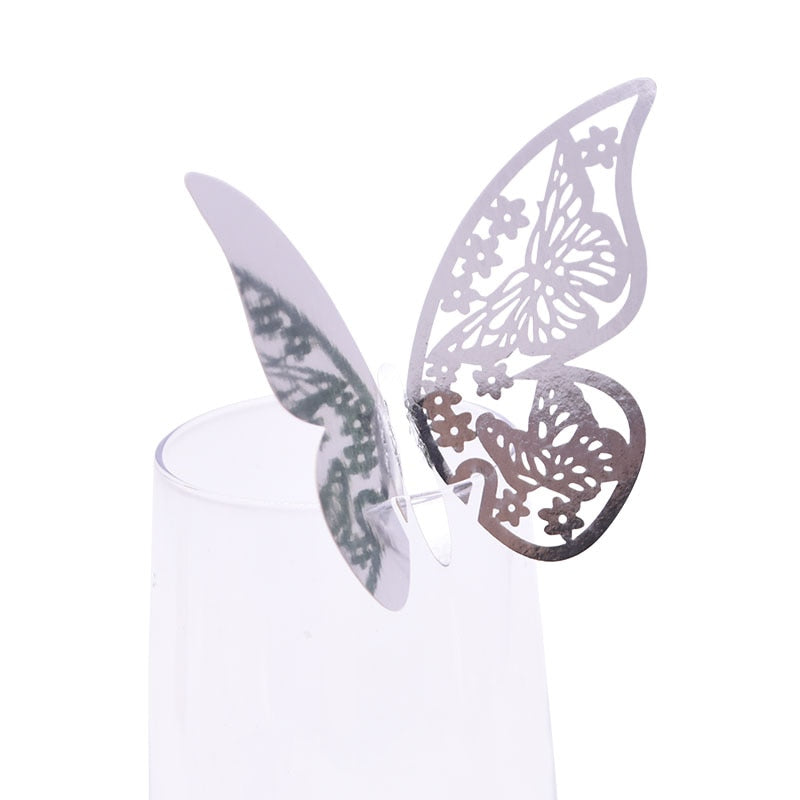 50Pcs Butterfly Name Place Card Wine Glass Cup Paper Card for Wedding Birthday Decoration Table Event Party Supplies Baby Shower