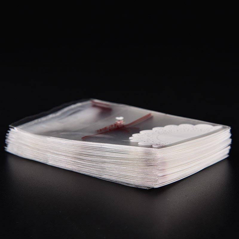 50PCS Lace Bow Print Cartoon Cookie&Candy Bag Self-Adhesive Plastic Bags For Biscuits Snack Baking Package Supplies