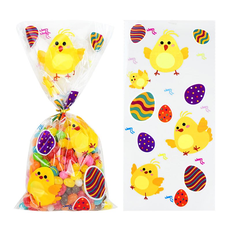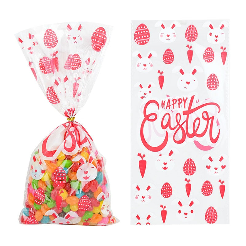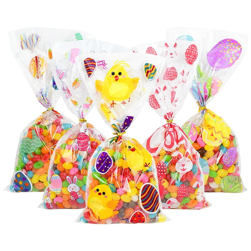 50pcs/lot Easter Cookie Candy Bag Bunny Eggs Printed Plastic Gift Packing Bags Baking Happy Easter Party Decoration Favors