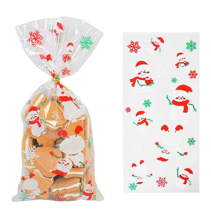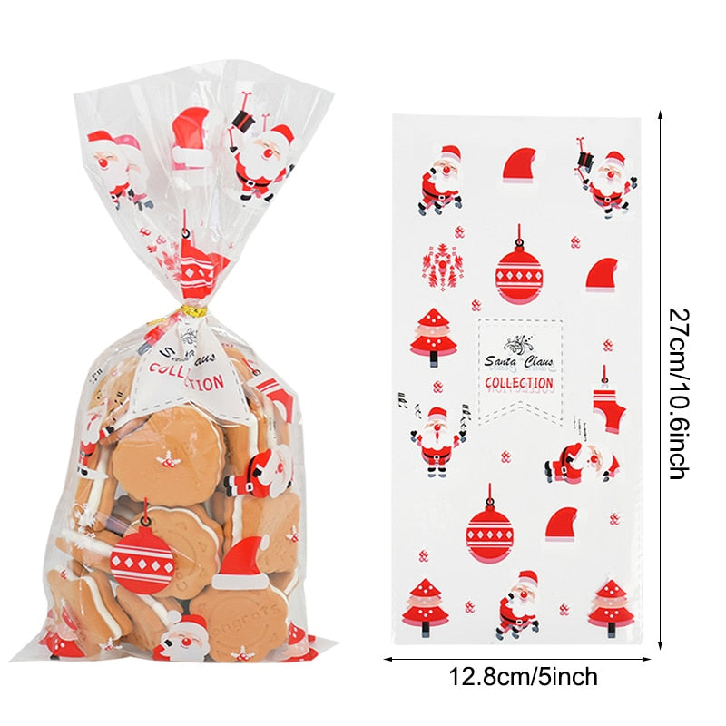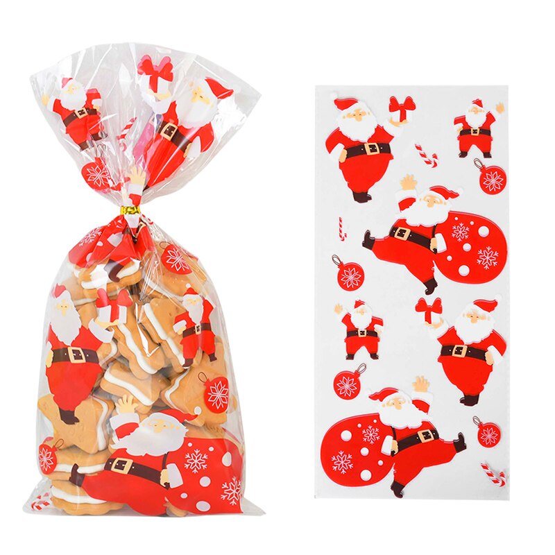 50pcs Santa Claus Christmas Tree Elk PVC Bags Transparent Clear Gift Bag for Christmas Gift Baking Candy Cookie Packaging Bags