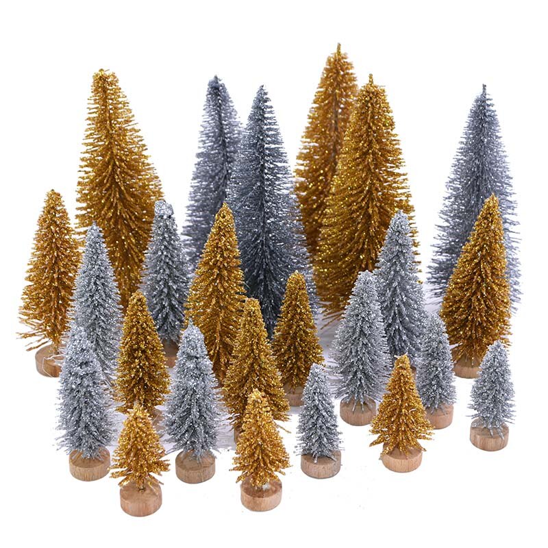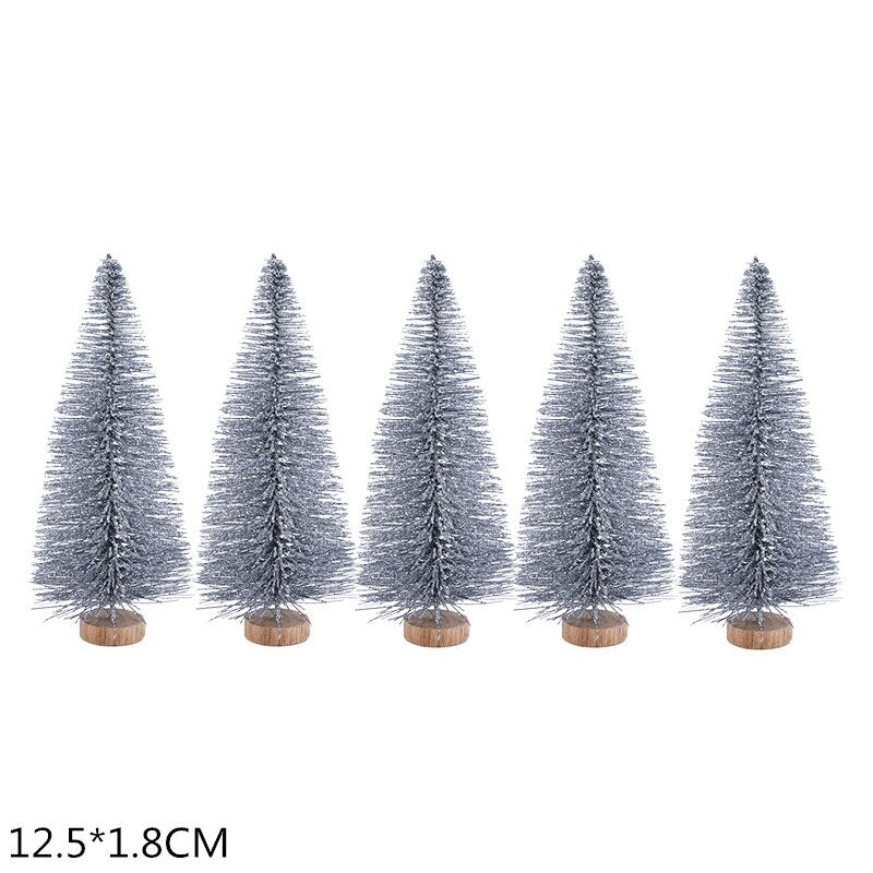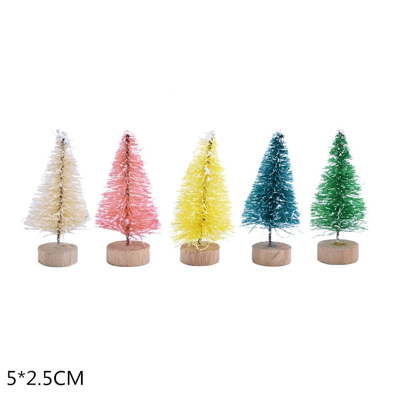 5Pcs 5-16cm Sisal Fiber Mini Christmas Tree Snow Frost Pine Tree DIY Craft Christmas Party Table Decoration Christmas Ornaments