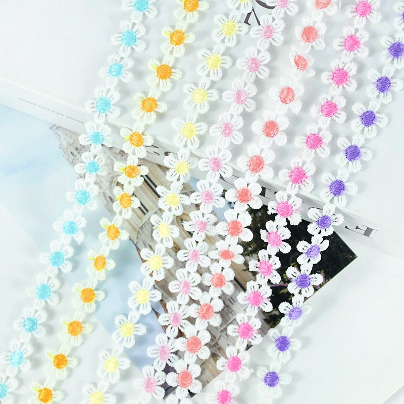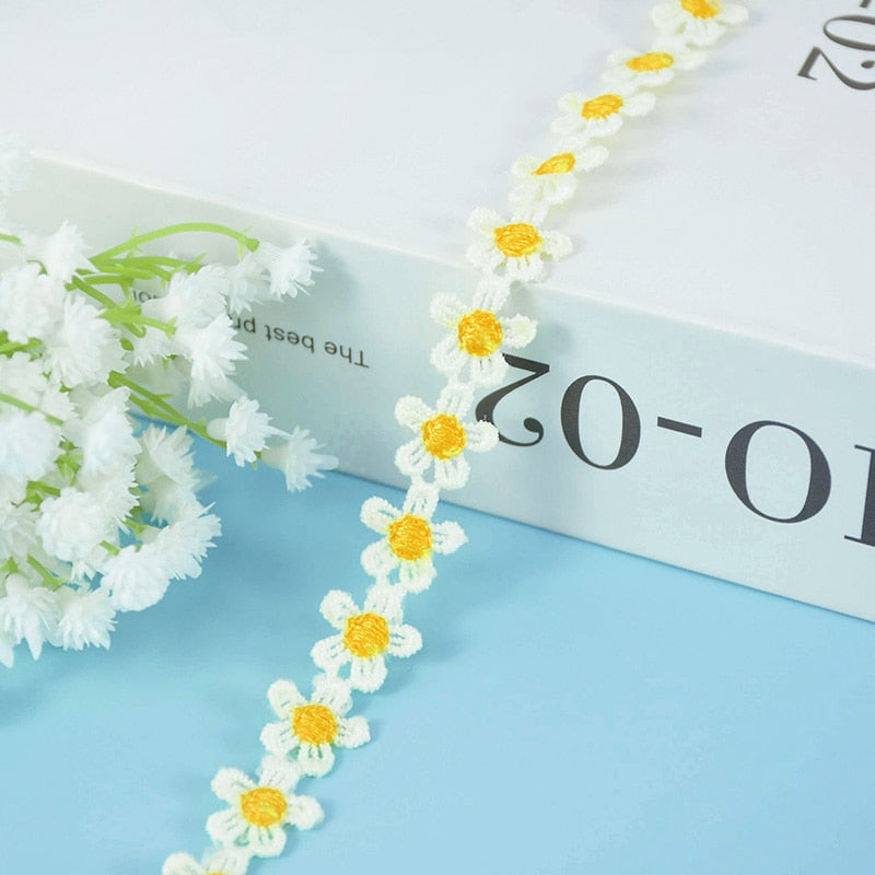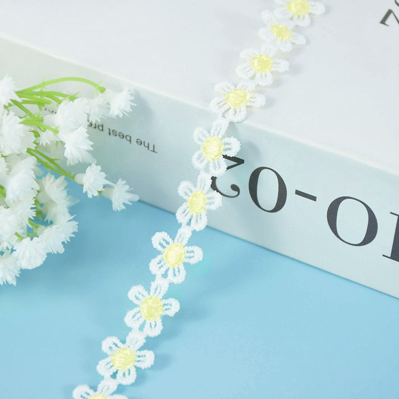 5Yards 15mm Daisy Lace Trim Flower Lace Fabric Embroidery Handmade Patchwork Ribbon Home DIY Crafts Apparel Sewing Accessories