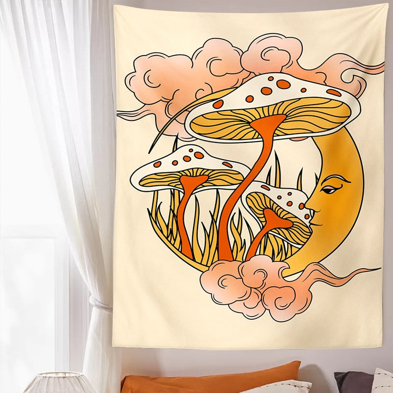 70s Mushroom Tapestry Wall Hanging Never Stop Growing Retro 70s Sun and Moon Wall Art Moon Groovy Decor Mushroom Decor hippie