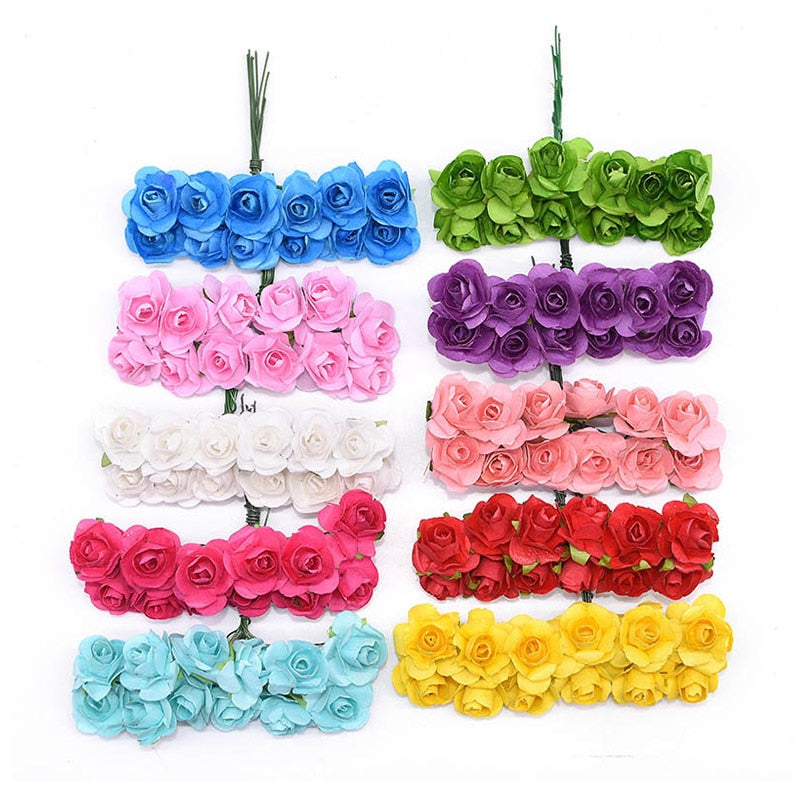 72/144pcs Artificial Flower Mini Cute Paper Rose Handmade For Wedding Decoration DIY Wreath Gift Scrapbooking Craft Fake Flower