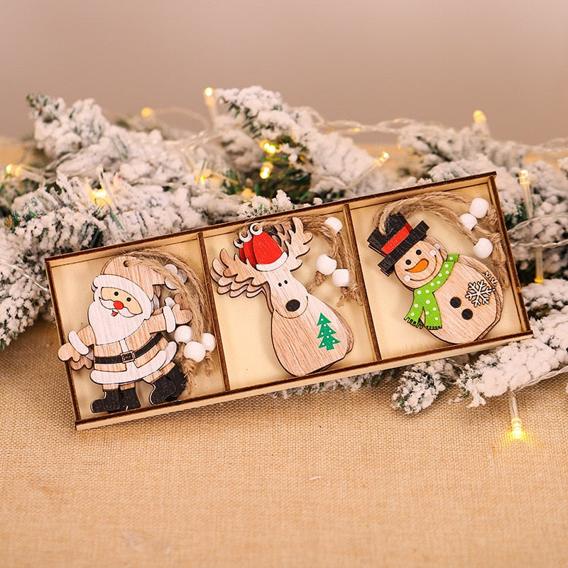 9pcs/box Christmas Car Wooden Pendants Xmas Tree Hanging Ornaments Christmas Decorations for Home Kids Gift Noel Navidad Decor