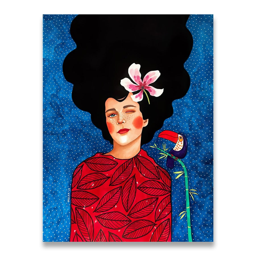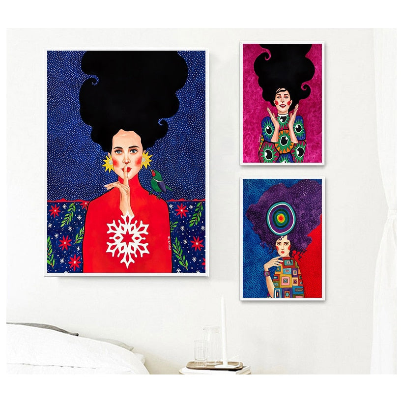 Abstract Colorful Girl Wall Art Canvas Painting Nordic Poster Flower Hair Cuadros Wall Pictures For Living Room Vintage Unframed