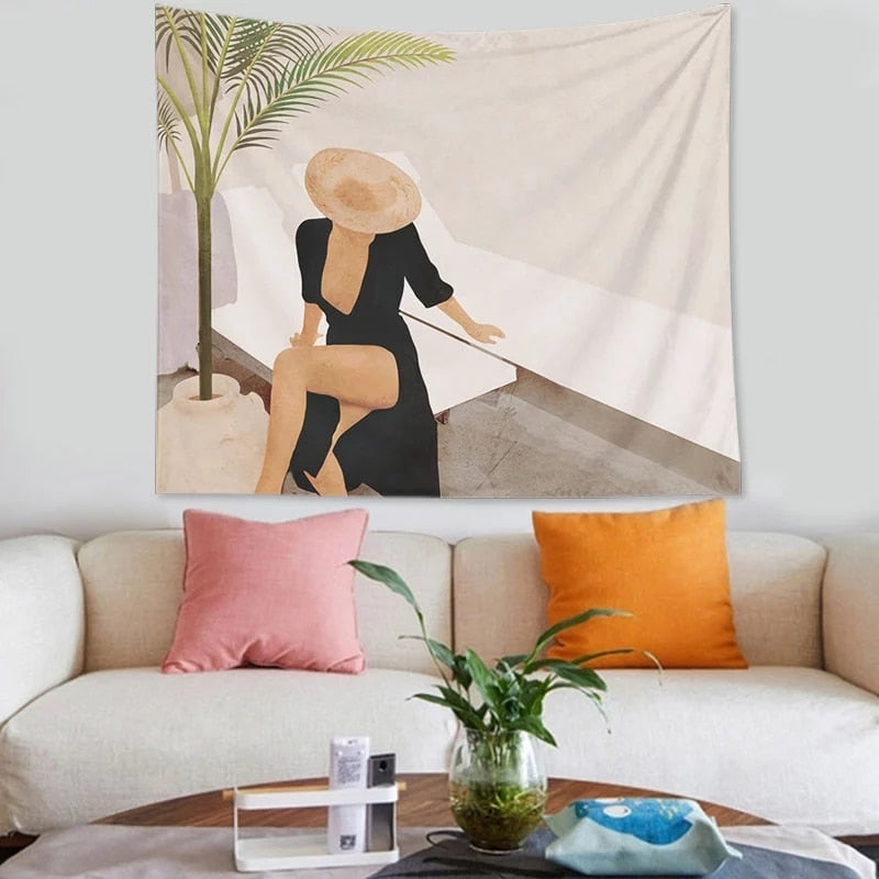 Abstract nordic Geometric Tapestry Tropic Modern Art Brown Wall Hanging ins Tapestry Decorative Tapestry For Home Decoration