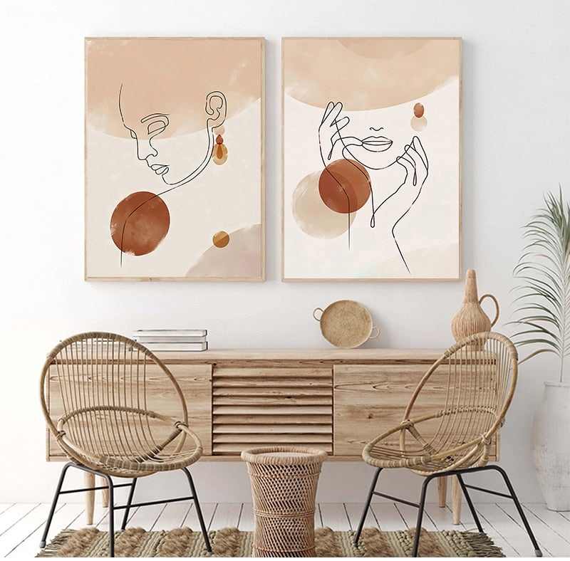 Abstract Woman Face Line Drawing Print Boho Wall Decor Terracotta Minimalist Poster Wall Art Canvas Painting Pictures Home Decor